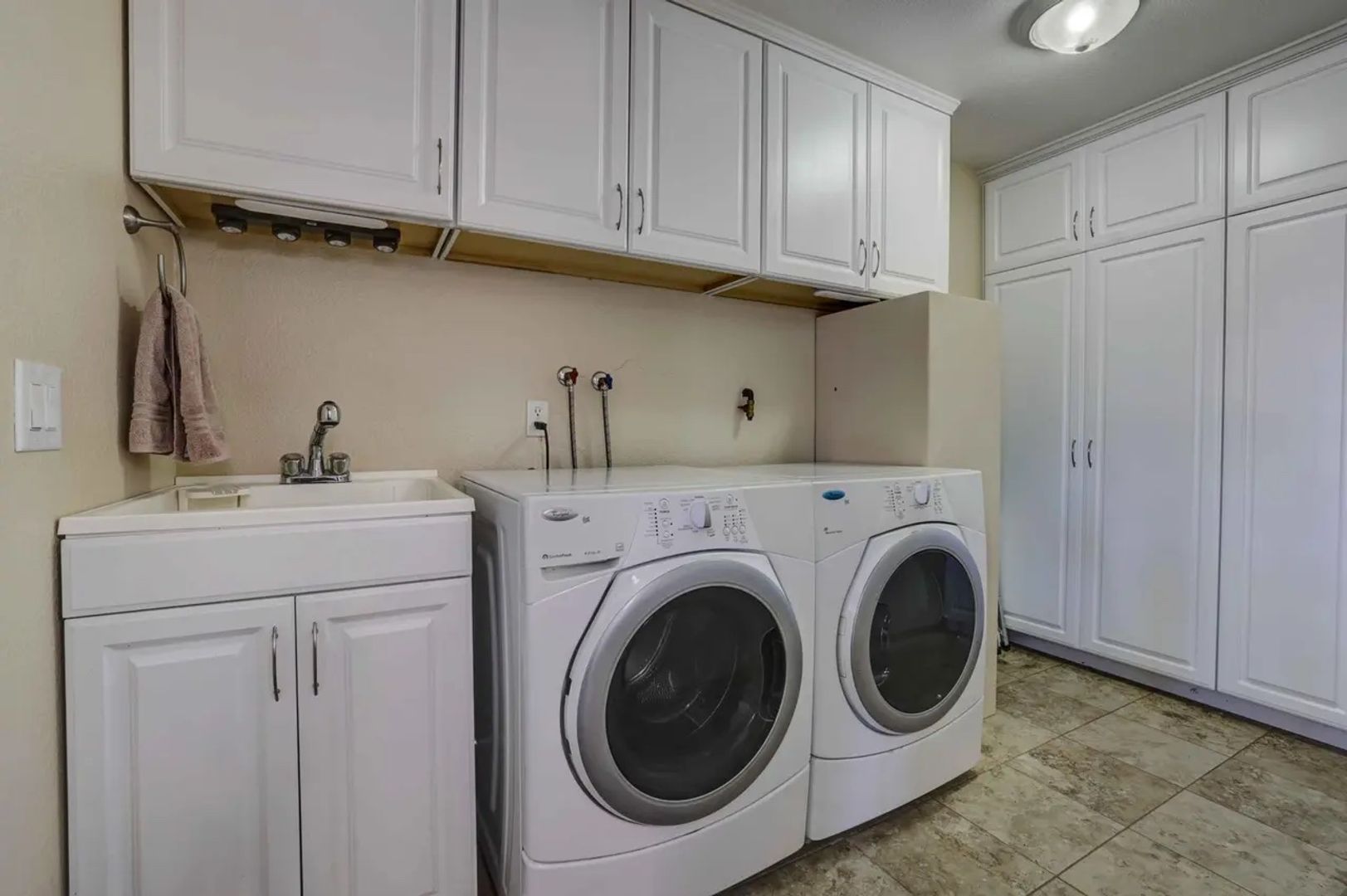There is a one car garage with a additional two car garage that could be used as a bonus room/office/bedroom. Already converted at the moment.