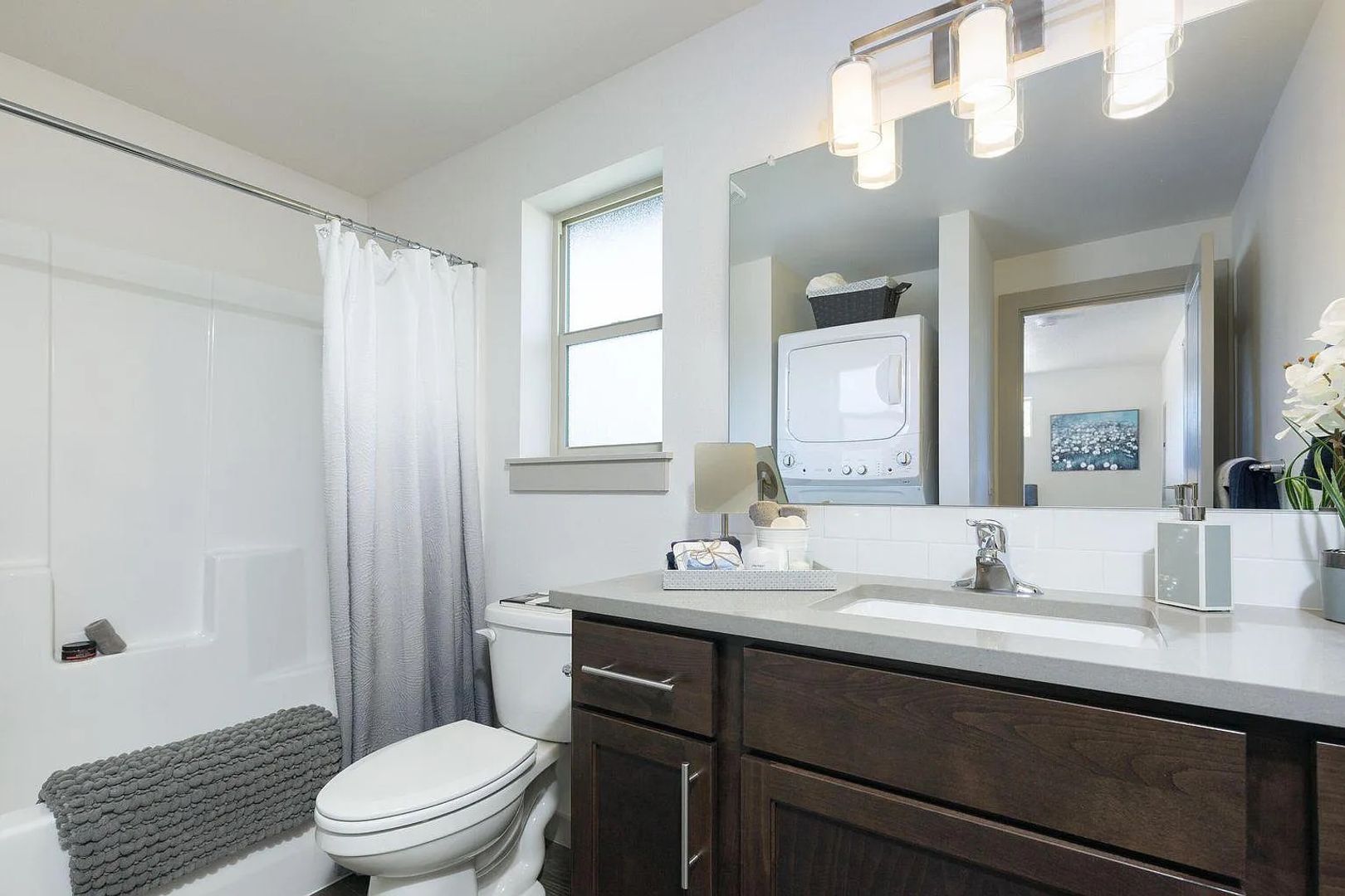 The bathroom is designed with your comfort in mind, featuring a spacious shower and a vanity with plenty of storage space for all your toiletries. The ADU also features a laundry area with a washer and dryer, making it easy to take care of your laundry without leaving the comfort of your own home.